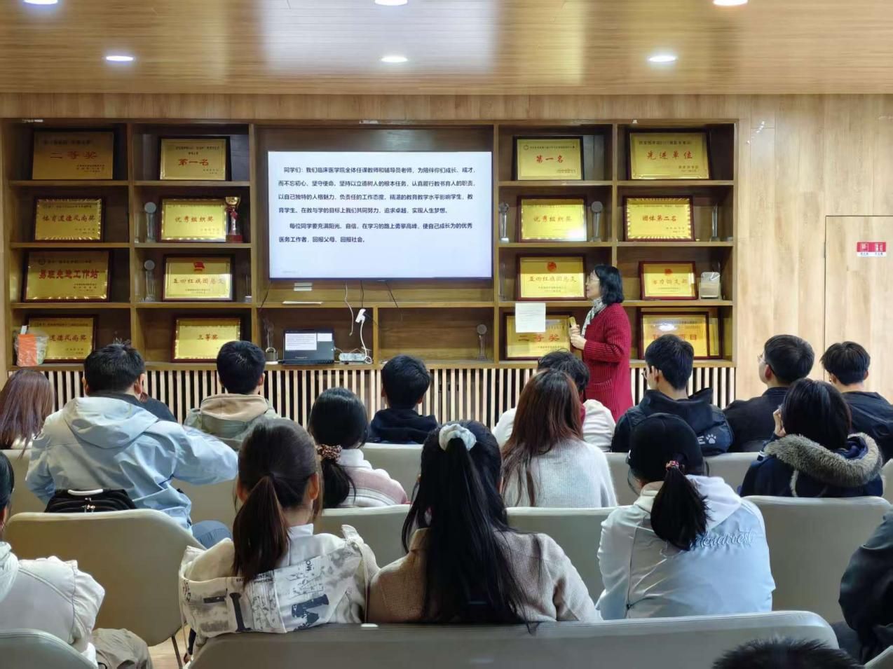 讲座尾声,荆亚茹老师寄语学子:以 “尊重科学、敬畏生命” 传承医学事业,以 “文明守纪、举止优雅” 涵养医学生风范,以 “求实进取、精益求精” 延续 “五老” 拼搏精神。希望同学们在西安医学院既做 “五老” 精神的继承者,更做新时代医学的开拓者,让医学薪火在逐梦临床的青春韶华里绽放更亮光芒。